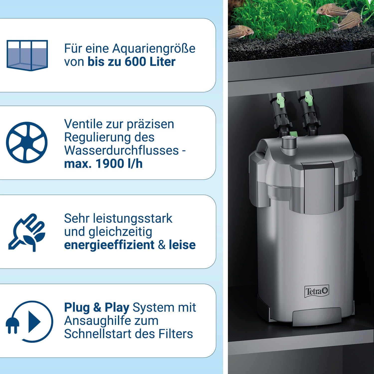 Die überarbeitete Tetra EX Plus Außenfilter-Serie überzeugt durch eine Vielzahl an neuen Features und unterstützt dabei das Wohlbefinden deiner Aquarienbewohner und Pflanzen.